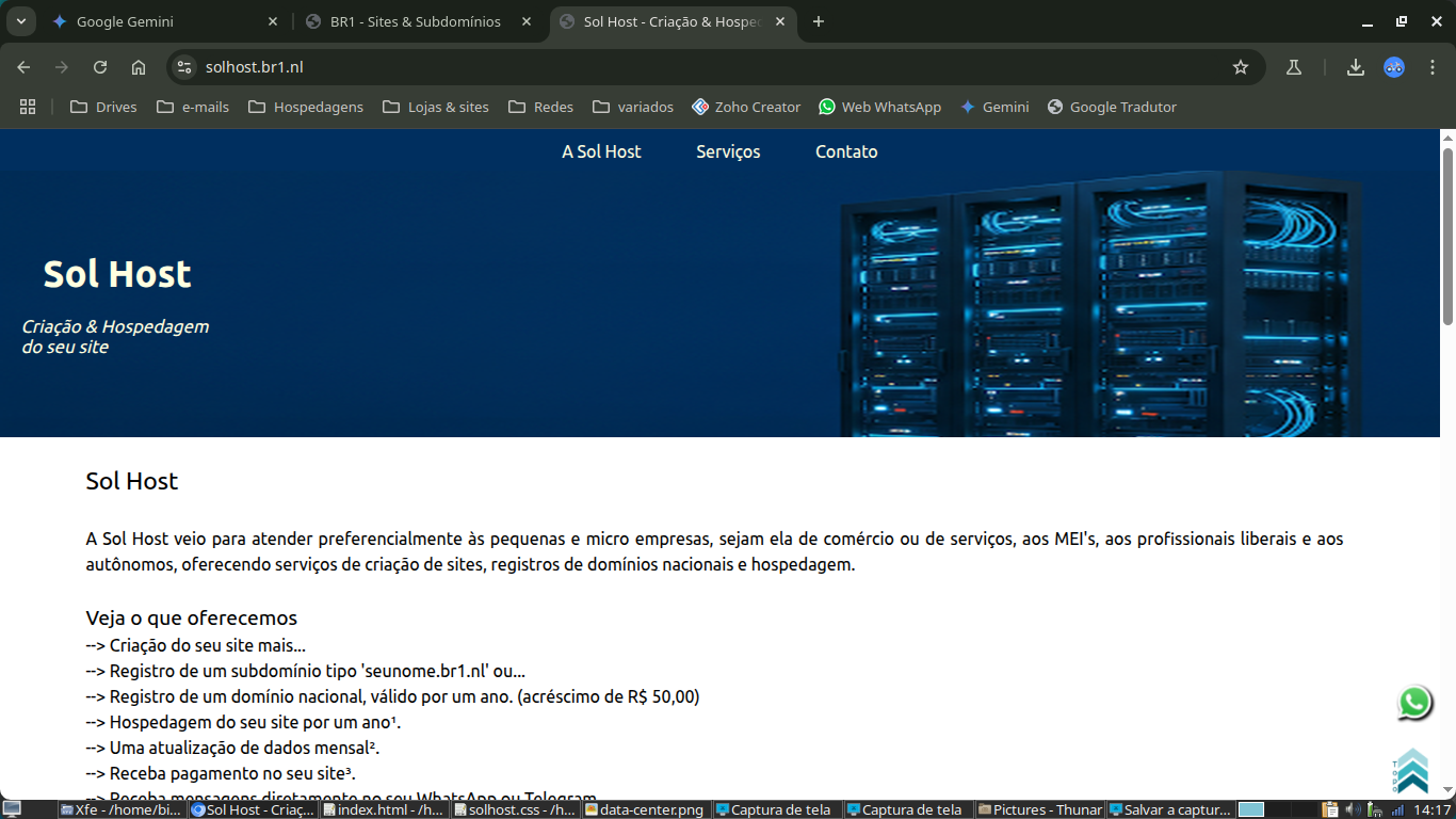 Criamos e hospedamos sites para micro empresas, prfossionais liberais e profissionais autônomos, que podem ser com um domínio próprio ou utilizando um subdomínio do domínio br1.nl.